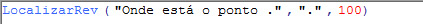 A função LocalizarRev retorna a posição em que um caractere ou uma sequência de caracteres foram localizados em um determinado texto a partir de uma posição inicial, sendo a leitura feita no texto da direita para a esquerda.