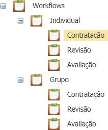 A funcionalidade Workflow, permite realizar configurações das atividades de Contratação, Revisão e Avaliação de workflows Individuais e de Grupos.