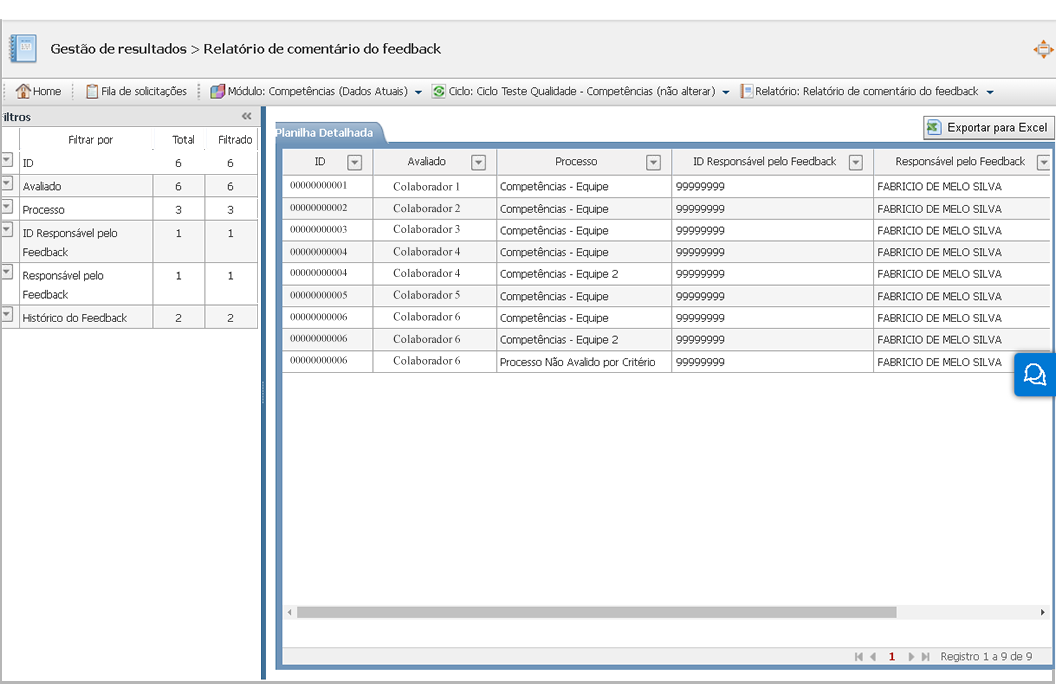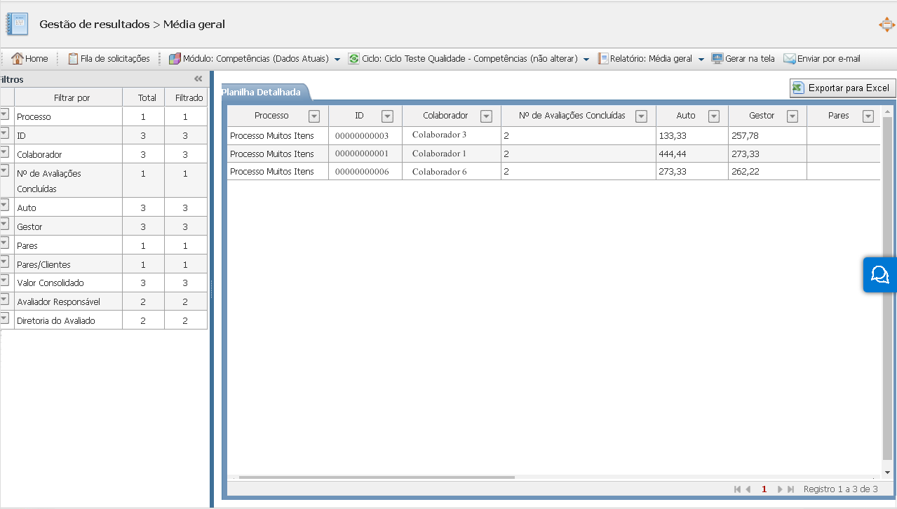 Segue abaixo os Relatórios disponíveis para o processo de Gestão de Desempenho - Simplifica: