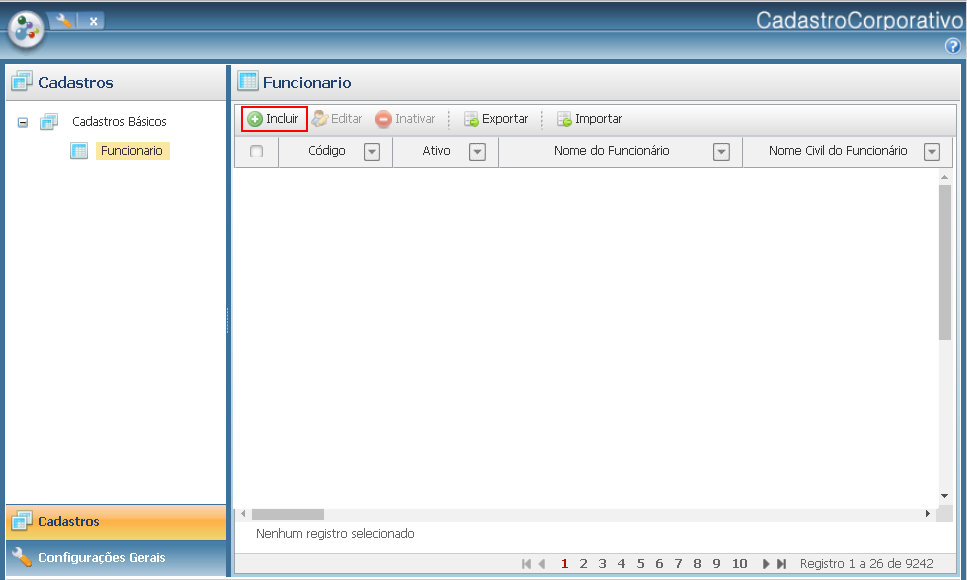 Através desta funcionalidade, é possível realizar cadastros dos funcionários que irão fazer parte da base de dados do cliente.