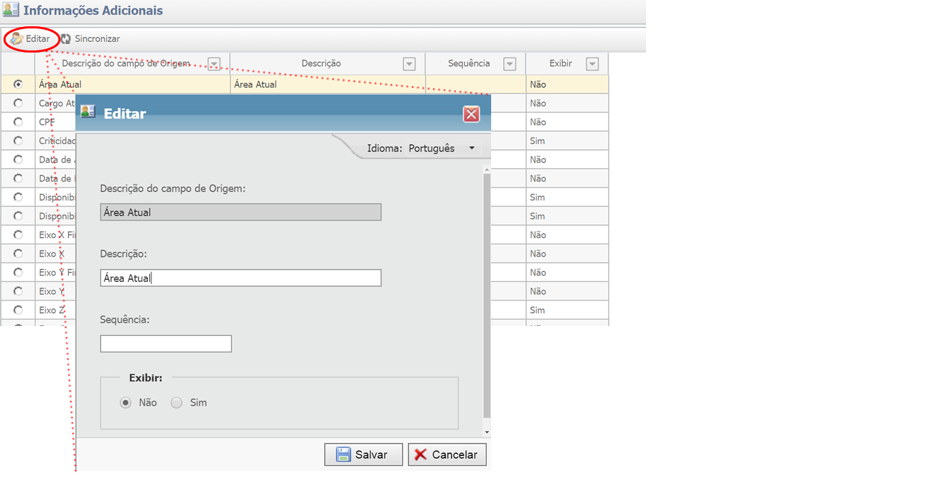 Para editar as informações, é necessário selecionar primeiramente um dos campos. Após selecionar a opção para edição