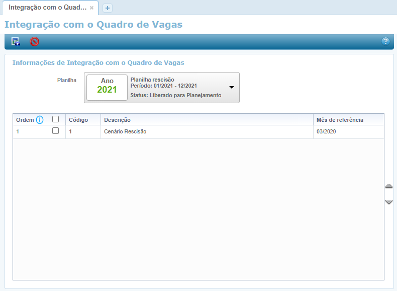 A Integração do Orçamento com o Quadro de Vagas torna possível realizar as operações de Exclusão e Inclusão dos registros no Quadro de Vagas a partir do módulo Gen.te Planeja - Orçamento de Pessoal.